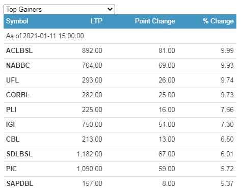 Meanwhile, Multipurpose Finance Company Limited (MPFL) lost the most 5.95%. MPFL is closely tailed by Gurkhas Finance Limited (GUFL) with a loss of 3.73%.